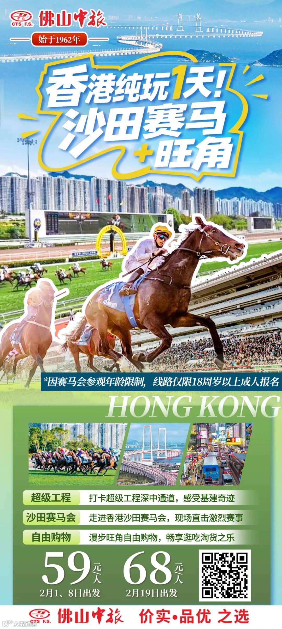 07:40 祖庙地铁C口集合 → 08:00 桂城万达西约C口出发 → 途经深中通道 → 参观沙田马场 → 旺角自由逛吃 → 18:00 旺角维景太子站集合返程