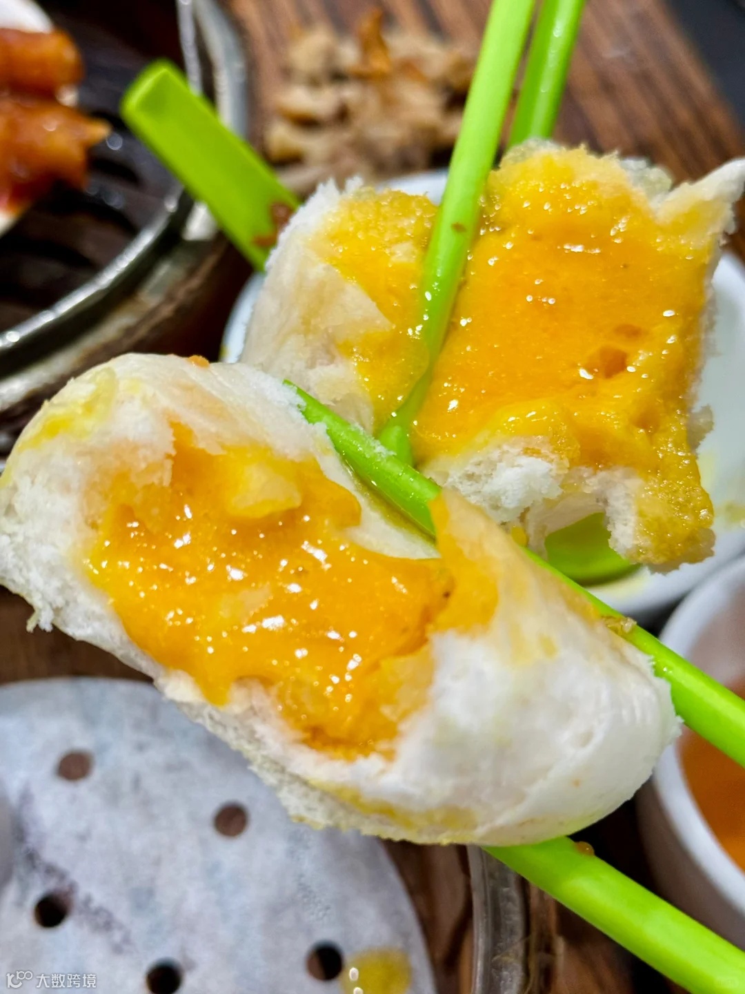 流沙包是真的好吃,每次蒸好就被其他桌全拿走。等了好久才吃到!热乎乎的现蒸流沙包很松软,内馅甜甜,微微带沙,好满足!