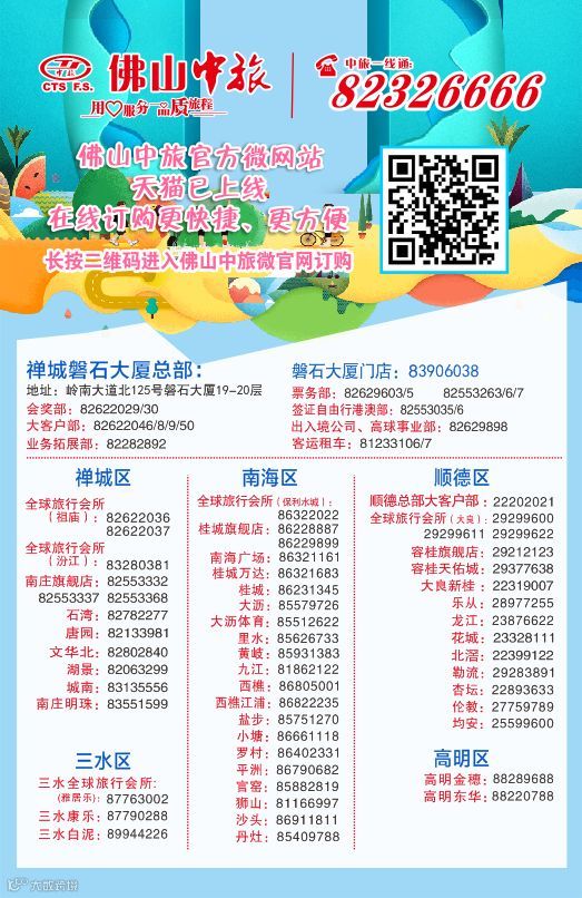 咨询或预定可联系您身边的佛山中旅营业部哦