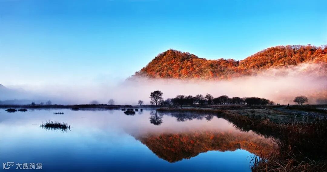 清晨的大九湖,碧波荡漾,雾气蒸腾,俨然是一个天然氧吧。