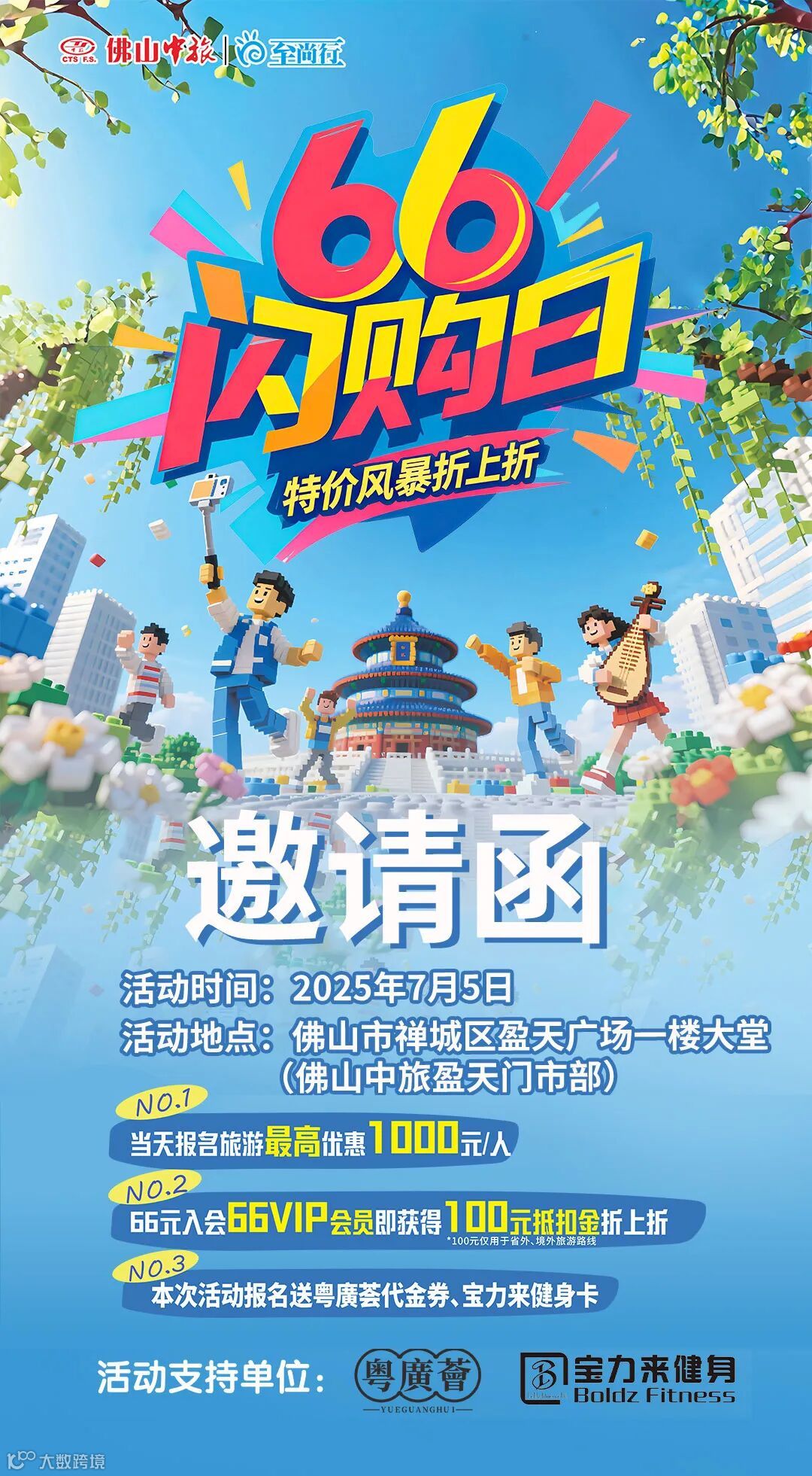 火热抢购中【66闪购日|盈天广场一楼】特价风暴折上折,国内游至高立减2000元 佛山中旅