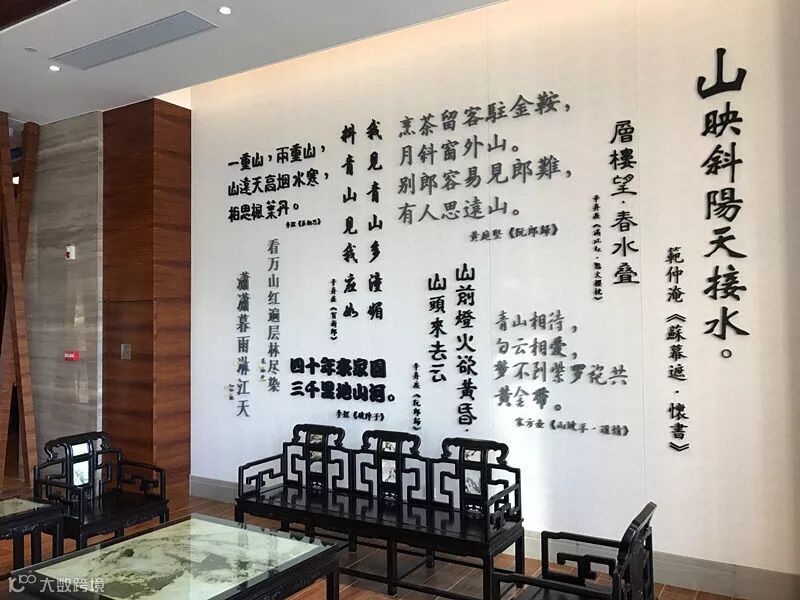 休息区的背景墙上都是描写山水风景的诗句,用来形容这山上的景色真的再适合不过了。
