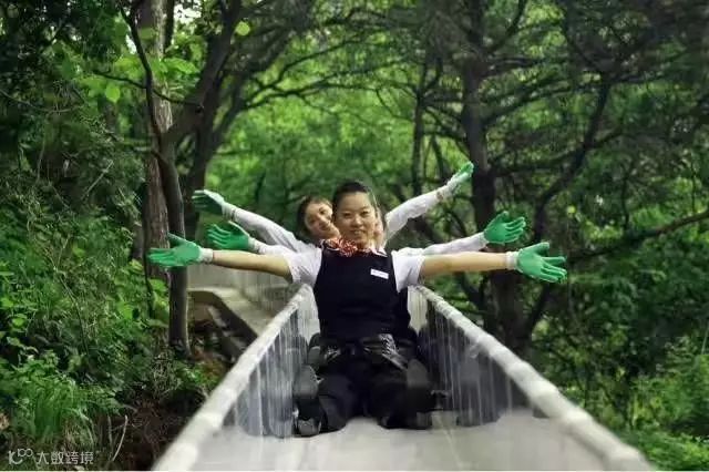 在走完水平的玻璃栈道后,会有一段滑道直接通到地面,游人坐在专用垫上滑下来,有点像坐过山车一样,也像坐着飞机往下俯冲,体验着失重的感觉。那就飞速前行,飞下山来吧!
