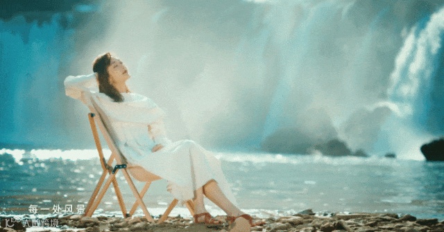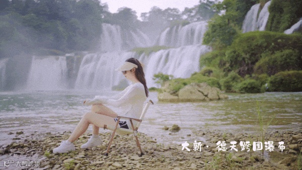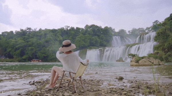 清澈河水旁,以德天跨国瀑布为幕布,一张网红休闲椅就能秒出大片,与广西文化旅游形象大使王鸥便有了同款打卡瀑布的方式。