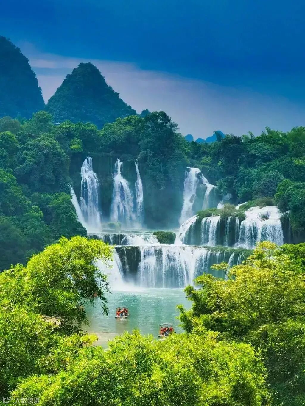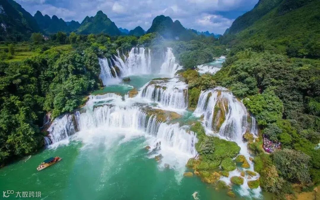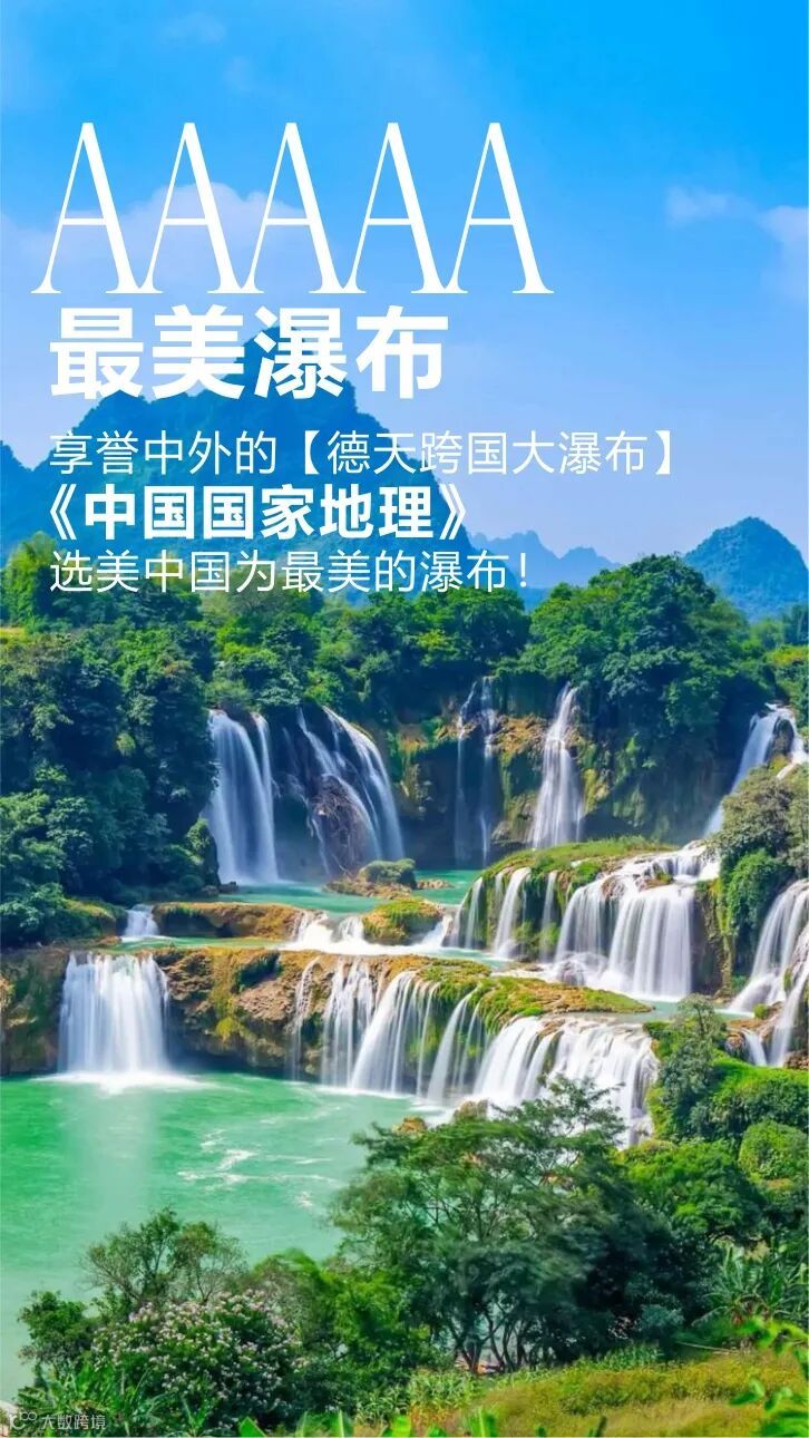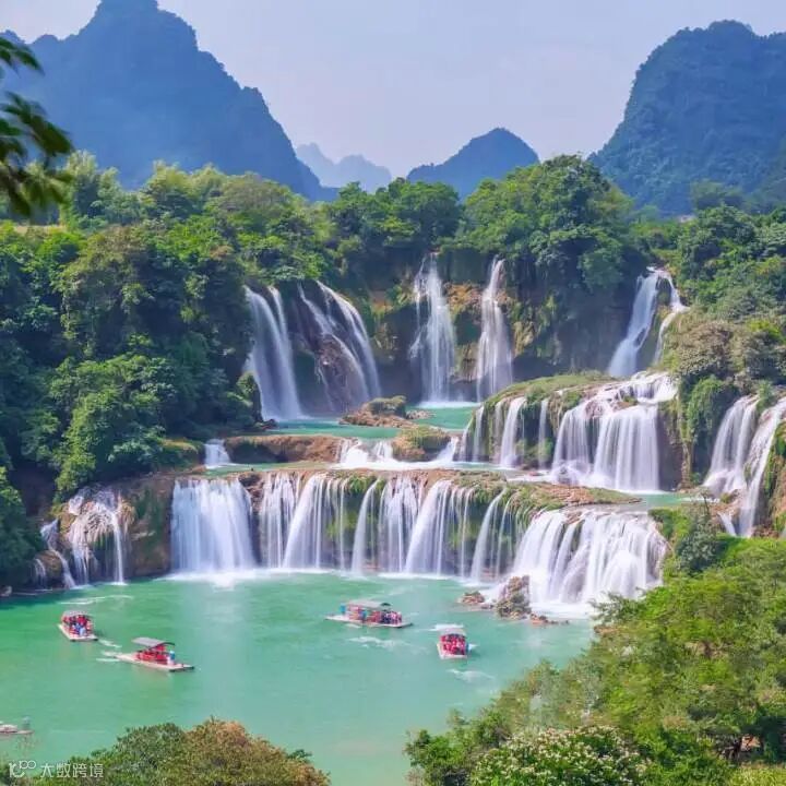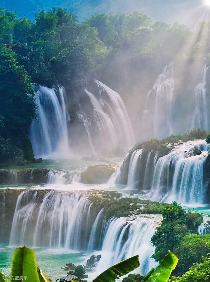 德天瀑布因仙侠剧《花千骨》而备受瞩目,三级落差的德天瀑布与越南婉约的板约瀑布隔河相望,共同见证了两国边民的友好往来。