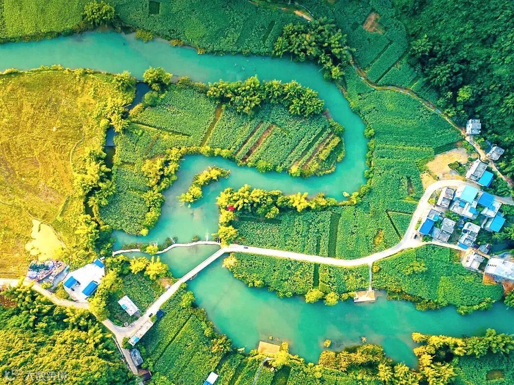 一幅美妙的青山绿水南国田园风光图尽现眼前。