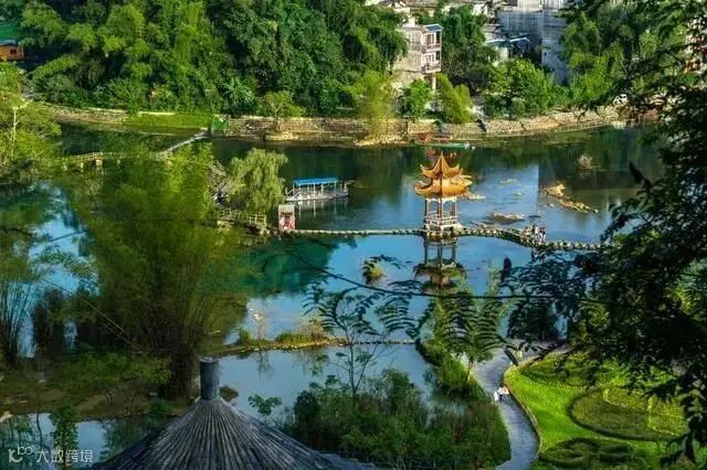这里翠竹绕岸,农舍点缀,独木桥横,