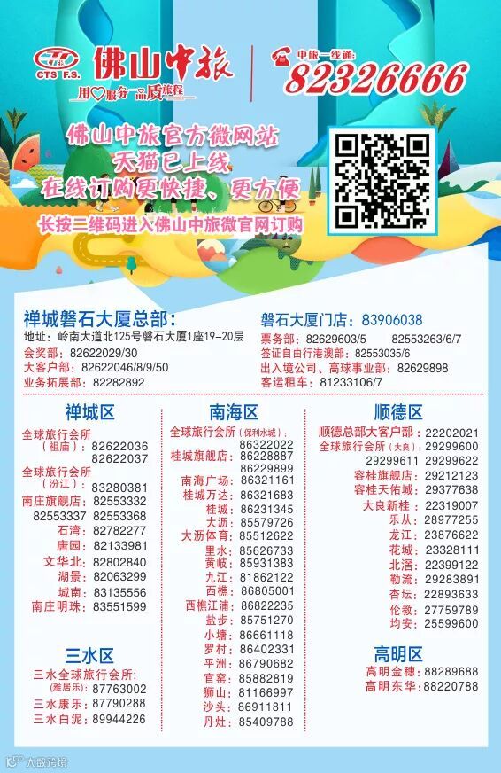 咨询或预定可联系您身边的佛山中旅营业部哦