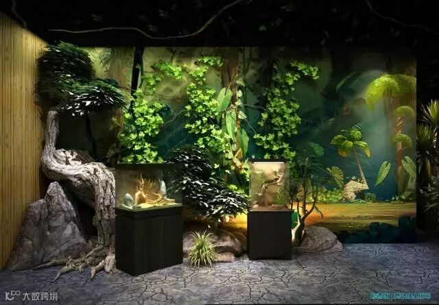 穿过原始森林风格的“原始部落”,以巨骨舌鱼和恐龙骨架展示区为亮点,有生命树、生命之桥、土著舞台等元素,配以绚丽的灯光造景,造就一个奇异而充满想象力的史前氛围空间。该区域内还打造有独具特色的长廊部分,有树蛙、蜘蛛、蜈蚣、水龙蜥蜴、角蛙、蟒蛇等两栖动物,集中展示亚马逊丛林风格的野趣。其中蟒蛇缠绕的废弃汽车是一个别致的造型区,直观展现动物世界的狂野激情。
