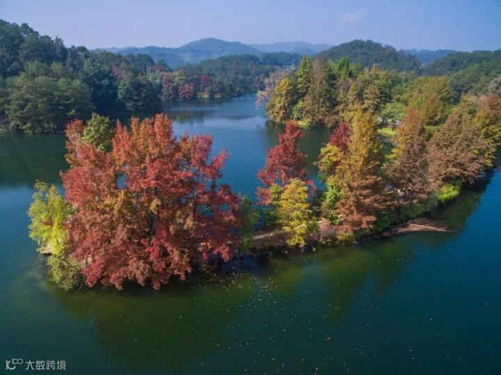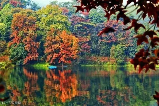 现正是赏枫好时节,群山被红叶点缀,湖水被红叶染炫,迂回曲折的林荫小道被红叶铺上了厚厚的红毯。通红的红枫,纯绿的湖水,在阳光的照耀下五颜六色、姹紫嫣红、美轮美奂,是休闲旅游、照像摄影人的天堂。