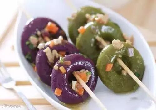 形美。在客家饮食菜肴中,人们在保持食物自然形态美外,有时以食物造型赋予菜式内在含义,从而通过进食方式达到饮食与心理的一种共鸣。在粤东客家地区,一种被称之为“算盘子”的糯米团子,光洁溜滑,甜中带香,寓意子孙聪敏好学,做事有划算。