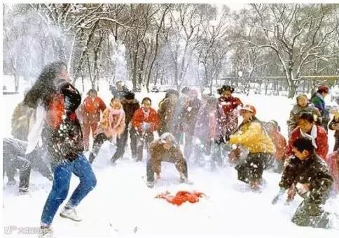 堆雪人、打雪仗、拉爬犁、抽冰尜