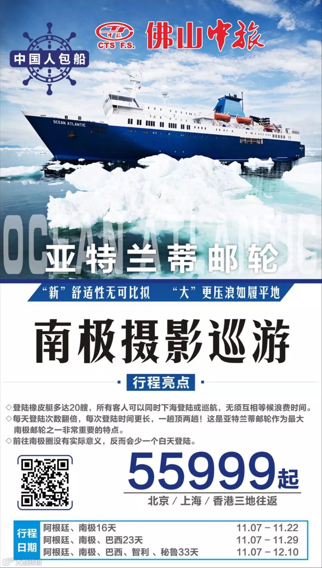 是的我们将乘坐高级别抗冰邮轮-海洋亚特兰蒂斯号,前往极地探险。