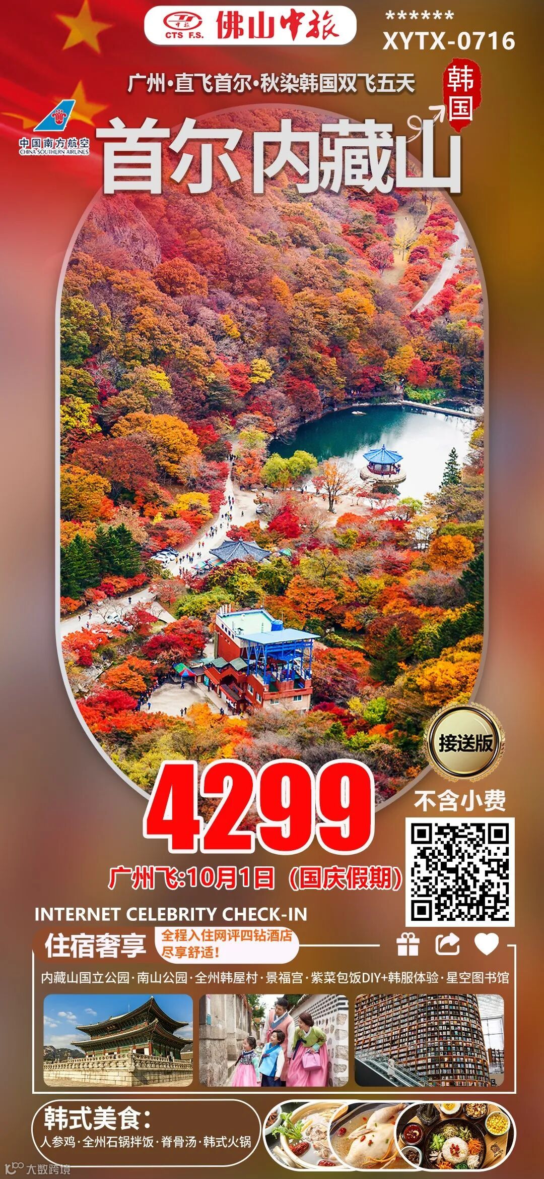 特色景点:内藏山国立公园、景福宫、全州韩屋村、南山公园、星空图书馆