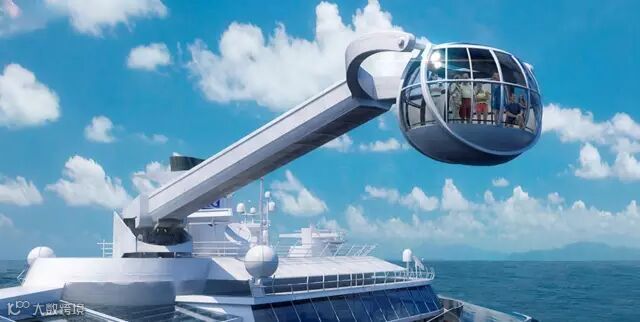 大名鼎鼎的北极星,是船上的海拔最高点,是“皇家”的一大特色亮点,可360度旋转的吊杆手臂,宝石形的玻璃舱将旅客送到离海平面91米的全新高度,俯瞰一切。