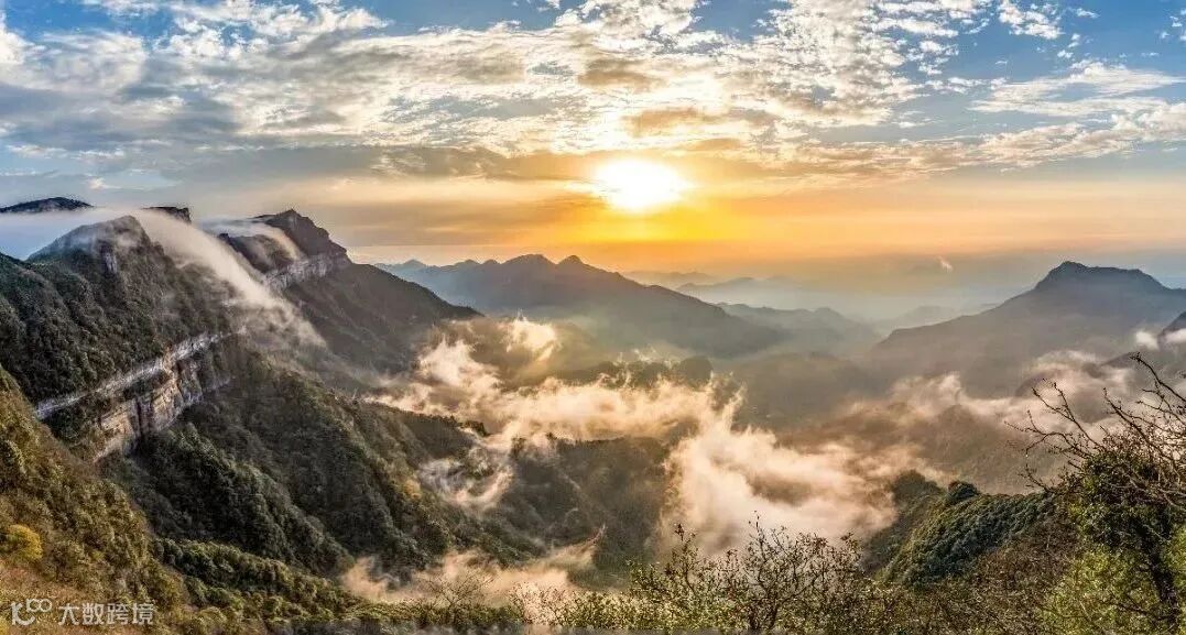 在金佛山之巅,云雾缭绕之上,倾听古树的低语;俯仰之间,心生共鸣。薄暮中,飞鸟掠,雾气湿衣裳饮酌那清茶;自在身,自在心,踏落泥土香,解乏岁月长。