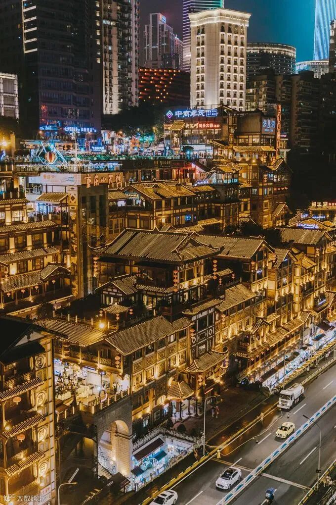 洪崖洞一面临江,一面依崖,吊脚群楼式的建筑共有11层,在顶楼11楼可以通往千厮门大桥和解放碑步行街,这里和1楼对面的大马路一样是可以饱览洪崖洞全貌的网红拍照点。