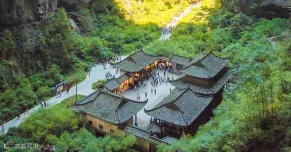 游览天生三桥,可步行,也可乘坐观光电梯,一览天坑全貌,看“三桥夹两坑”的世界奇特景观。到达天坑底部,除了打卡机械龙和天福官驿外,更可利用山洞,拍下各种有趣的照片。