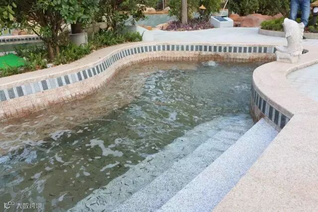 酒店温泉园区拥有32种汤池,日出水量达到1000多立方,出水温度36℃至40℃。水中还含有稀有的氡元素,无色无味,水质细腻,对心血管、胃、骨骼生长、等内循环系统等均有保健、养生作用。