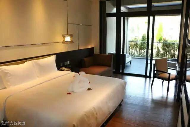 酒店客房面积54平米至200平米。客房床配置豪华人性化健康床垫及高档纺织品,客房枕头配置软硬调节枕,落地玻璃窗尽享优美热带园林景观。