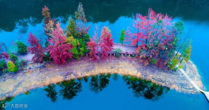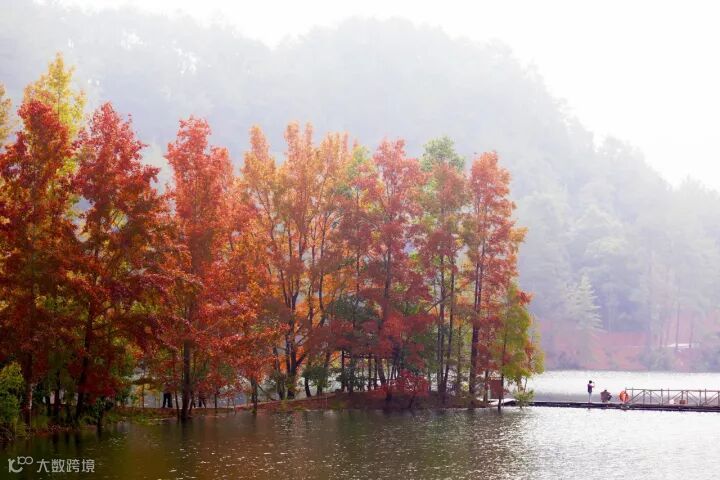 现正是赏枫好时节,群山被红叶点缀,湖水被红叶染炫,迂回曲折的林荫小道被红叶铺上了厚厚的红毯。通红的红枫,纯绿的湖水,在阳光的照耀下五颜六色、姹紫嫣红、美轮美奂,是休闲旅游、照像摄影人的天堂。