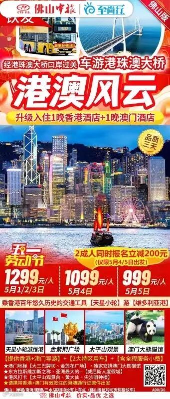 🌟特别升级1晚香港酒店+1晚澳门酒店