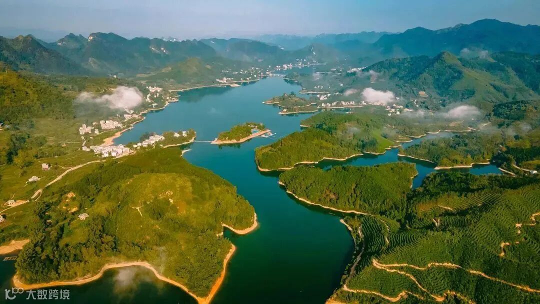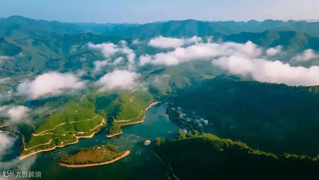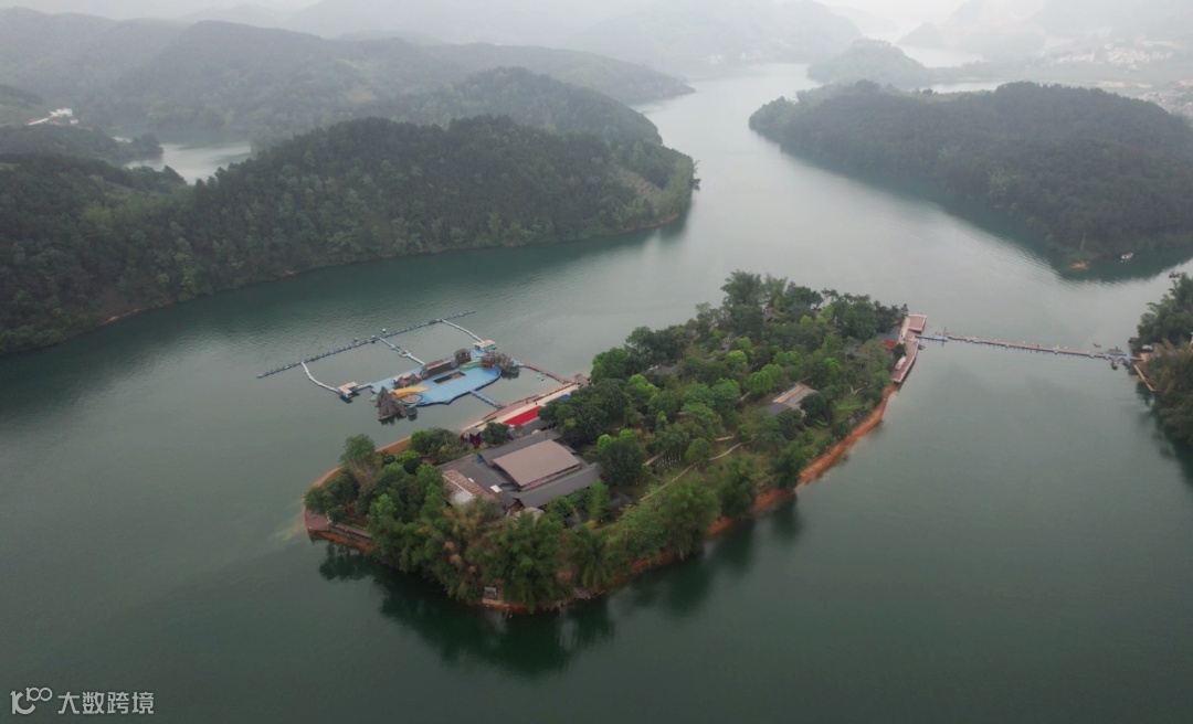 长寿岛好似一叶轻舟飘荡在青山绿水间,