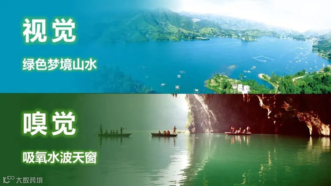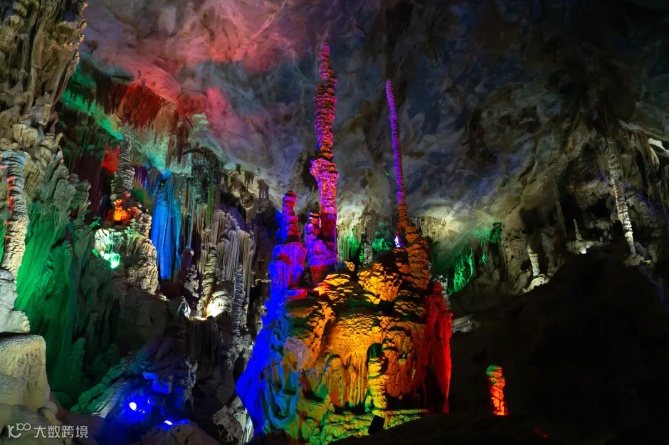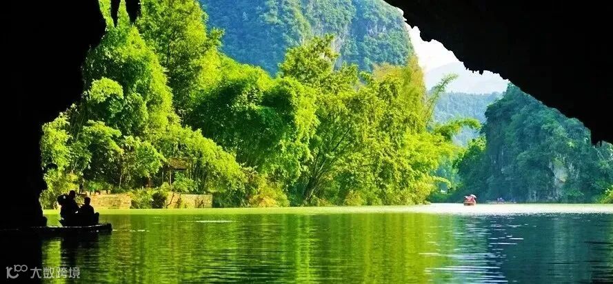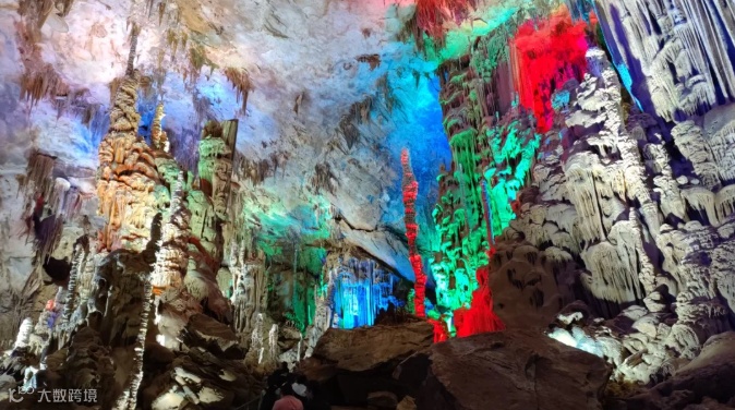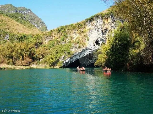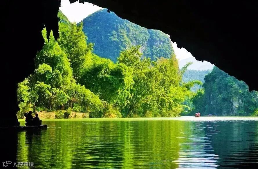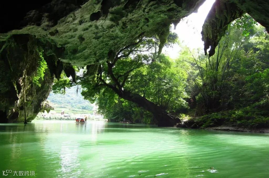 水似翡翠,景若天画,洞中有天窗,似皓月当空,这是装饰华丽、景幻莫测的水下龙宫,也是“水上芦笛岩”。