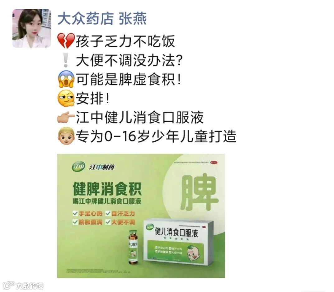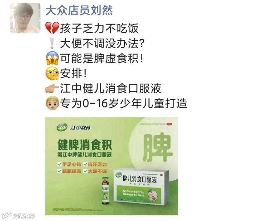 与此同时,通过配套的儿童诊断卡物料,督促门店店员对消费进行门店问诊,进行儿童脾虚的疾病教育。连锁与消费者教育两条线并行,最终达成产品销售,实现销量爆发式增长。
