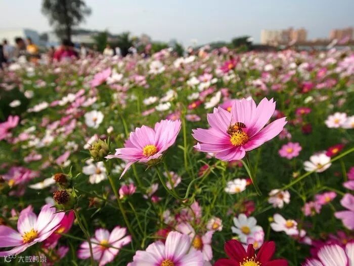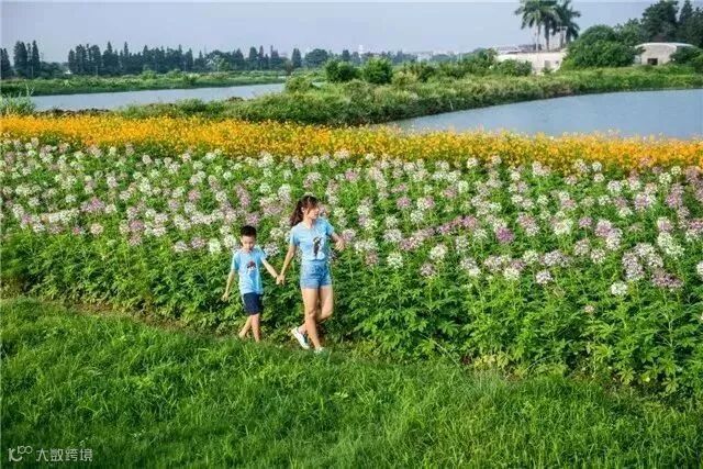 大埔鱼塘花海(占地14亩)则以花色鲜艳的醉蝶花、金鸡菊花海为主。