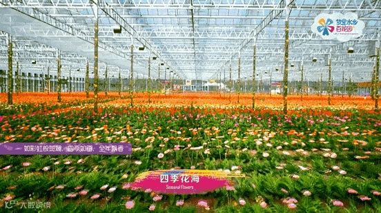 面积2.2万平方米,里面种植10种不同颜色太阳花,