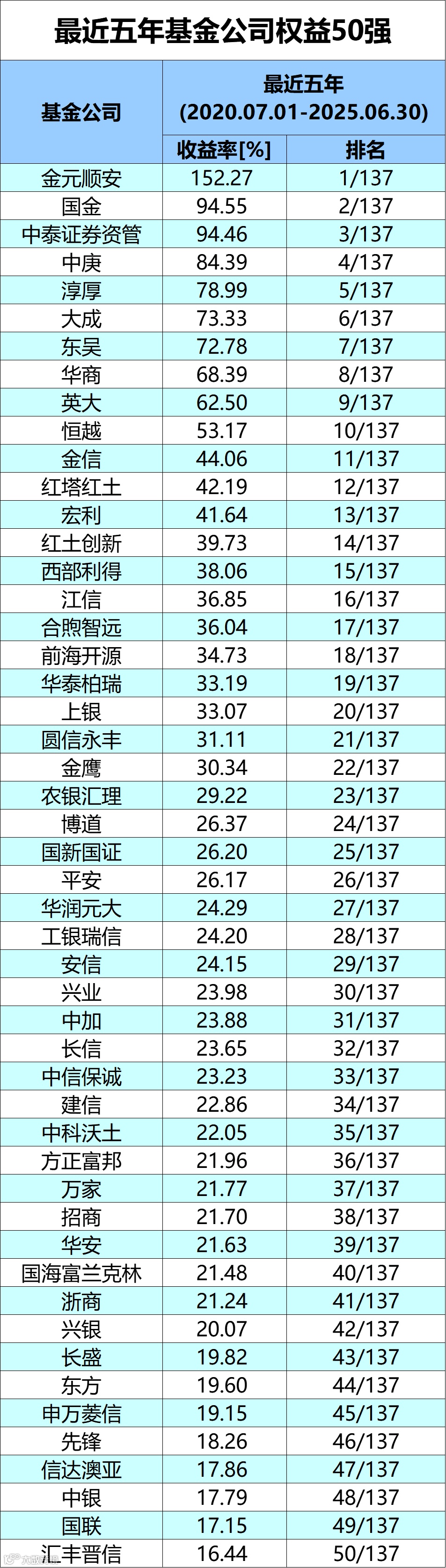 从2020年7月1日到2025年6月30日的五年间,A股市场也经历了震荡起伏的过程,涌现出一批有特色的中小型基金公司。