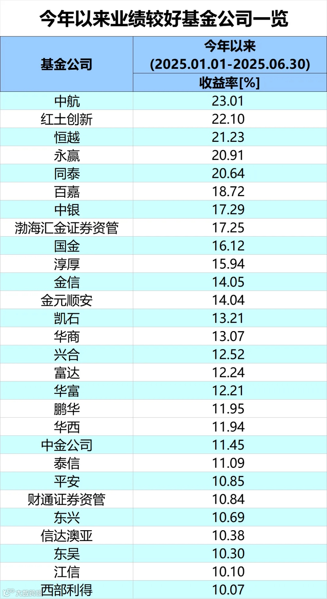 2025年上半年A股行情分化依然明显,AI、创新药、北交所、新消费、人形机器人等板块上涨幅度较大,重点布局这些赛道的基金公司业绩领先。