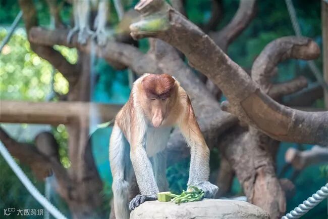 它们的鼻子大得出奇,雄性猴子随着年龄的增长鼻子会越来越大,激动的时候,大鼻子就会向上挺立或上下摇晃,而雌性的鼻子却比较正常。