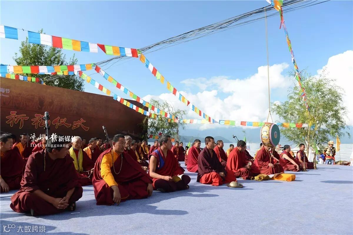 与达巴和喇嘛一起在湖边进行朝拜,