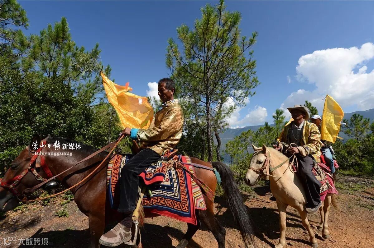 摩梭儿女们穿着节日的盛装,