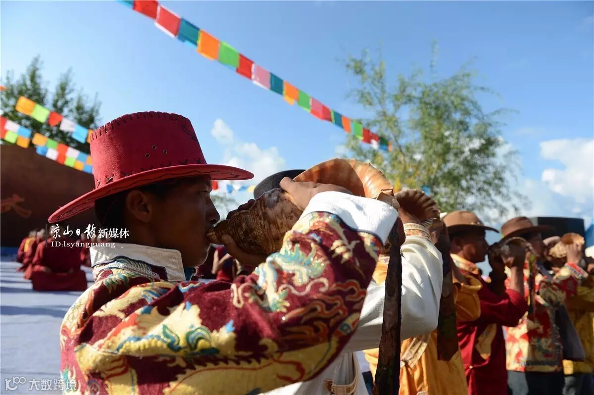 年轻男子则吹起隆隆的海螺,