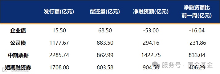 非金融企业短融、中票、企业债、公司债发行量、偿还量、净融资额(与前一周比较)