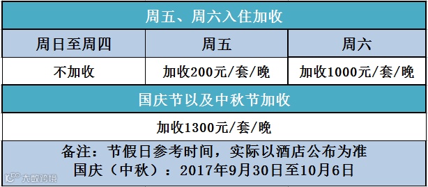 * 部分日期须加收,详细参考下文加收费用说明
