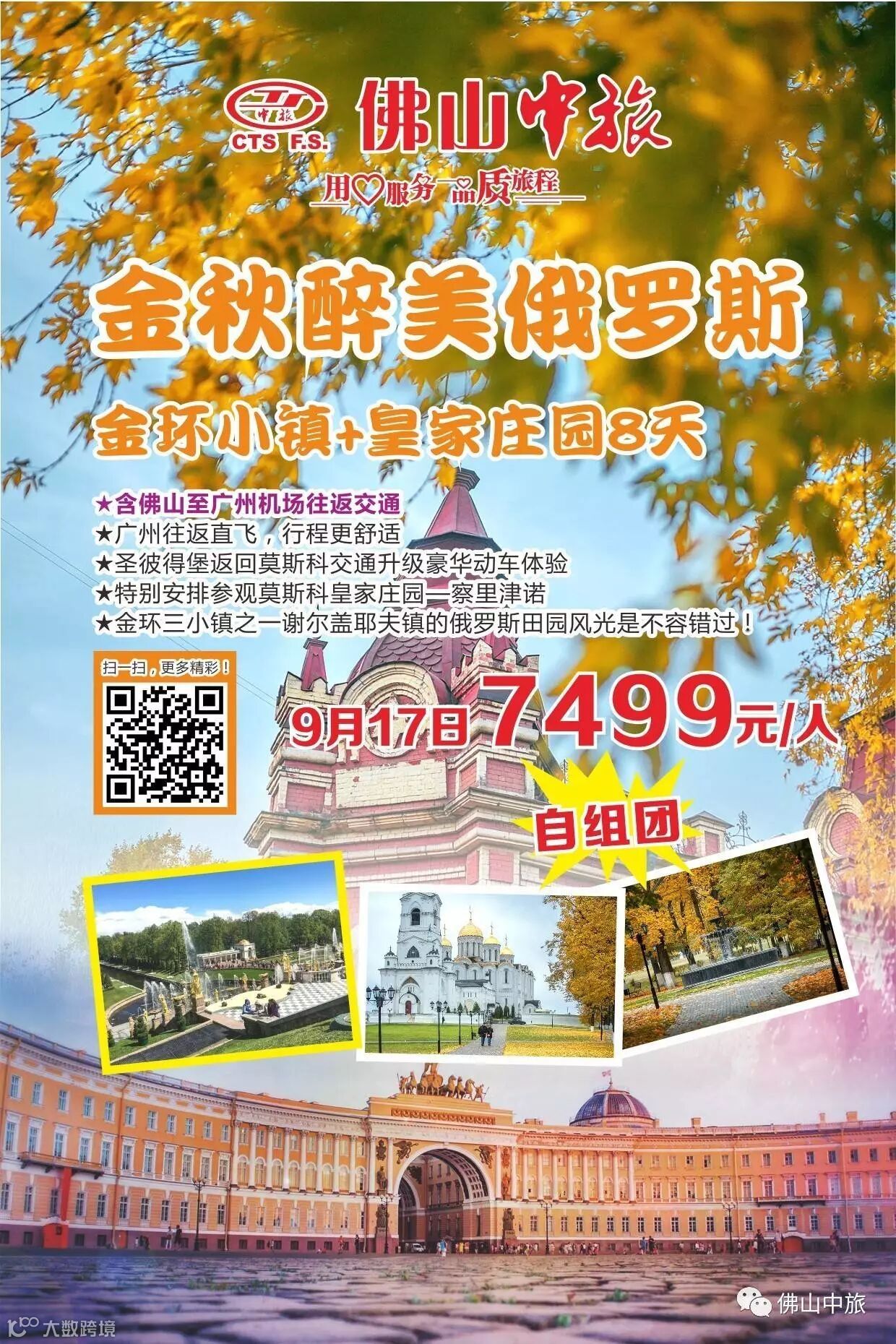 【自组团】金秋醉美俄罗斯金环小镇+皇家庄园8天