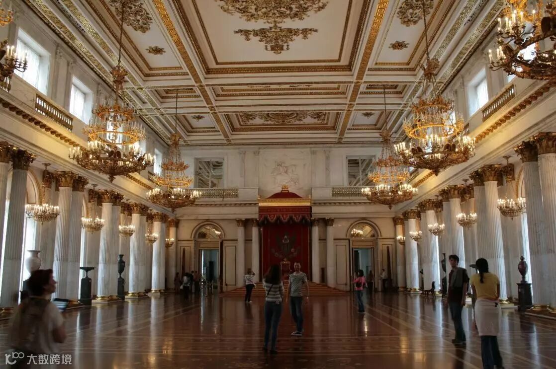 冬宫原为沙皇皇宫,与巴黎卢浮宫、伦敦大英博物馆、纽约大都会博物馆并称为世界四大博物馆。宫殿外表为标准的俄罗斯巴洛克风格,绿墙白柱,搭配金黄色的柱廊装饰,华丽却又不落俗套。