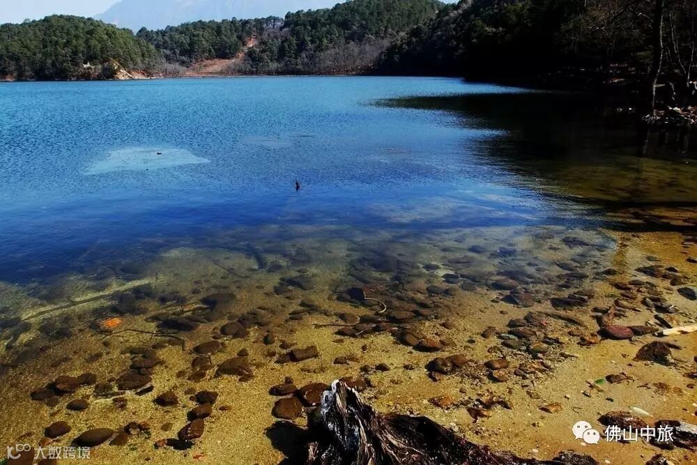 湛蓝的湖水被群山围绕,透明的湖面就像一块画板,绘出天空的澄澈,白云的多姿,远山的绵延,写意般的唯美。