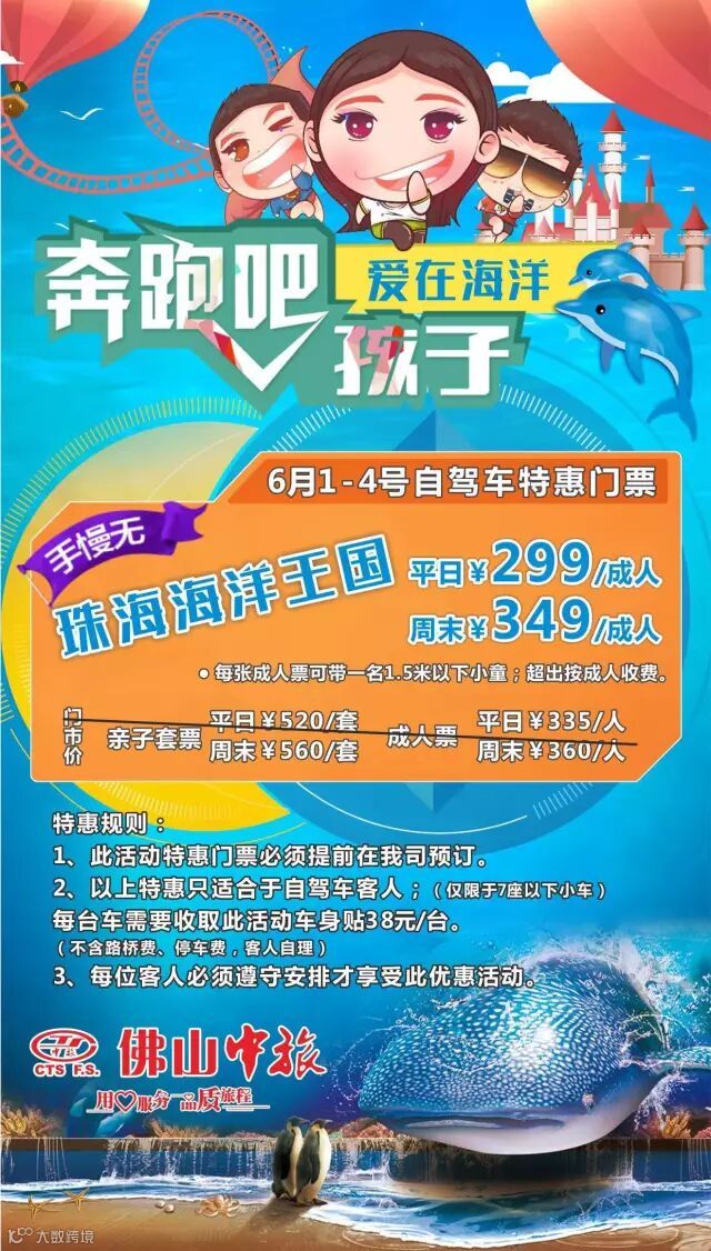 4.6月1-4号的当天早上10:00开始在珠海长隆海洋王国1号停车场集中;到景区团队入口处(正门左边)找我司工作人员集合取票(工作人员电话出发前一天通知到每一位车主);如果人数不够10人的情况下,需要等齐其他人一起入园,望谅解。