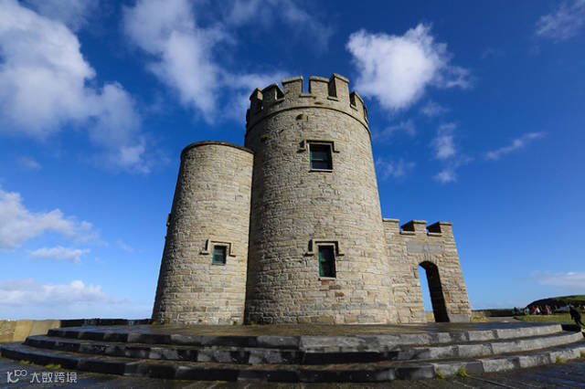 悬崖附近,高耸着一座圆柱体的荒废不堪的古堡,像一个颓然而立的骑士守护这莫赫悬崖。这座塔叫“奥布瑞恩塔”,他耸立在莫赫悬崖靠近最高点的岬角之上。多个世纪以来,该塔一直被认为是悬崖的最佳观景点,站在上面,可以俯视莫赫悬崖的全景。