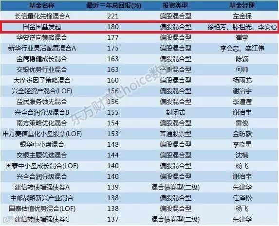 东方财富Choice数据梳理了过去三年(2014-2016)总回报率排名前十大的基金经理↓↓↓