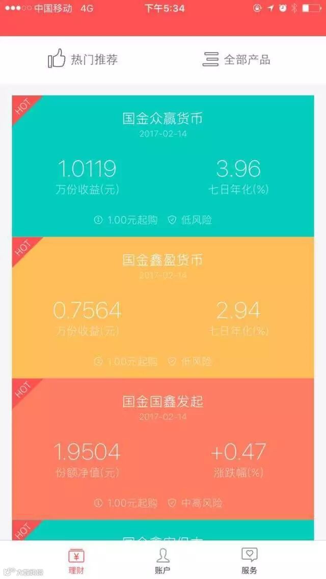 比如国金众赢货币基金(001234),2017年2月14日的七日年化收益率为3.96%。(数据来源:金牛理财网 截止日期:2017年2月14日)
