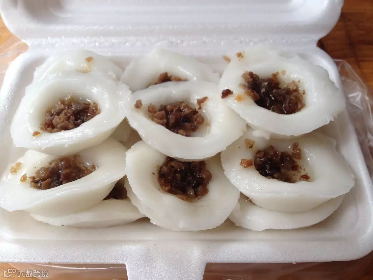 长得似小碟子的粿皮搭配上菜脯干,是潮汕一道特色的民间小吃,潮州的咸水粿用的是单纯爆香菜脯粒,与汕头的菜脯粒加甜酱还略有不同。