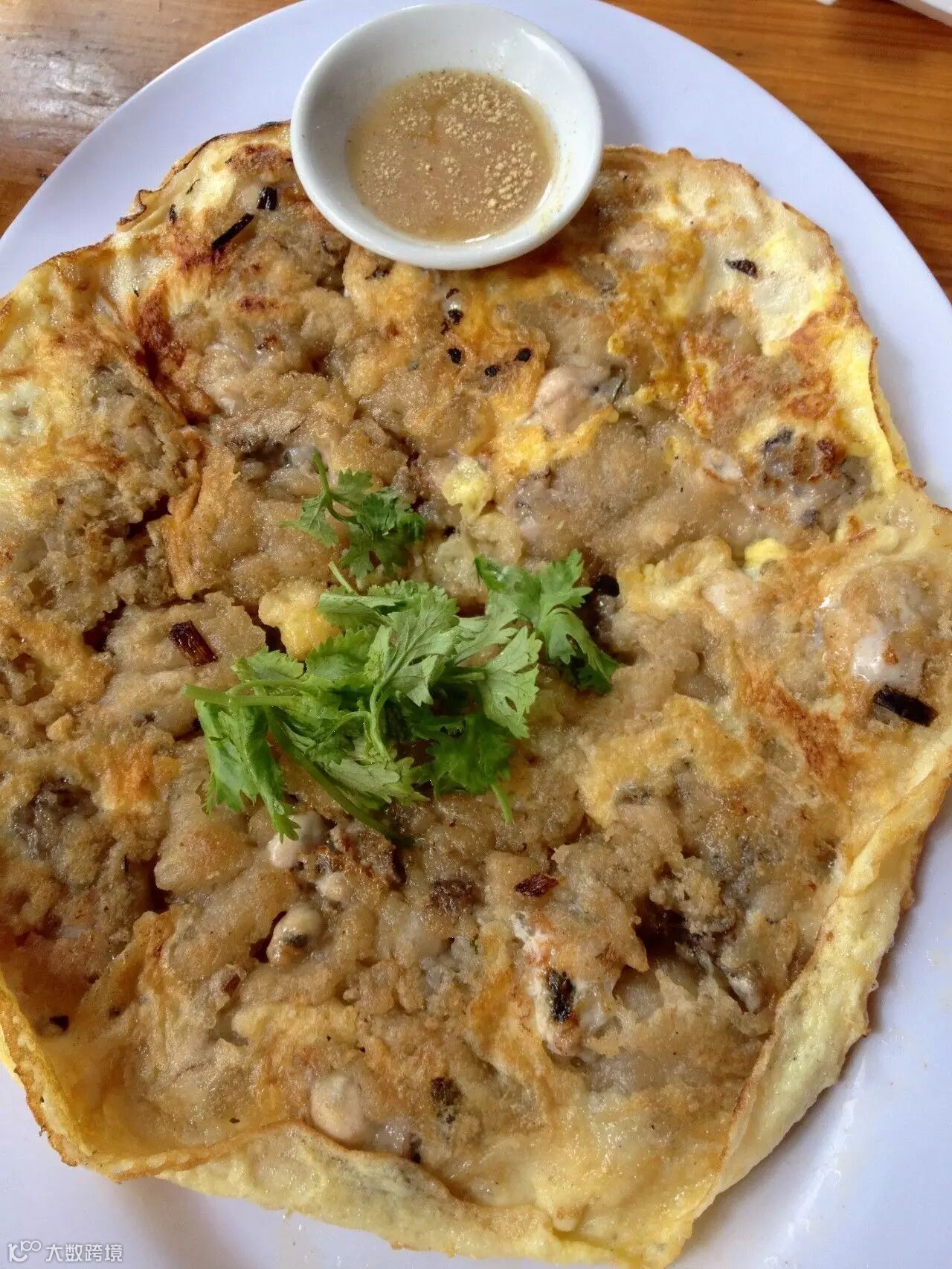出锅的蚝烙要配上一碟重口味的鱼露、一碟辣酱,还有功夫茶,蚝仔啵啵地在嘴里爆浆,鱼露霸道的香气和鸡蛋猪油香混在嘴里腻在心里,一口咬下去,心满意足。