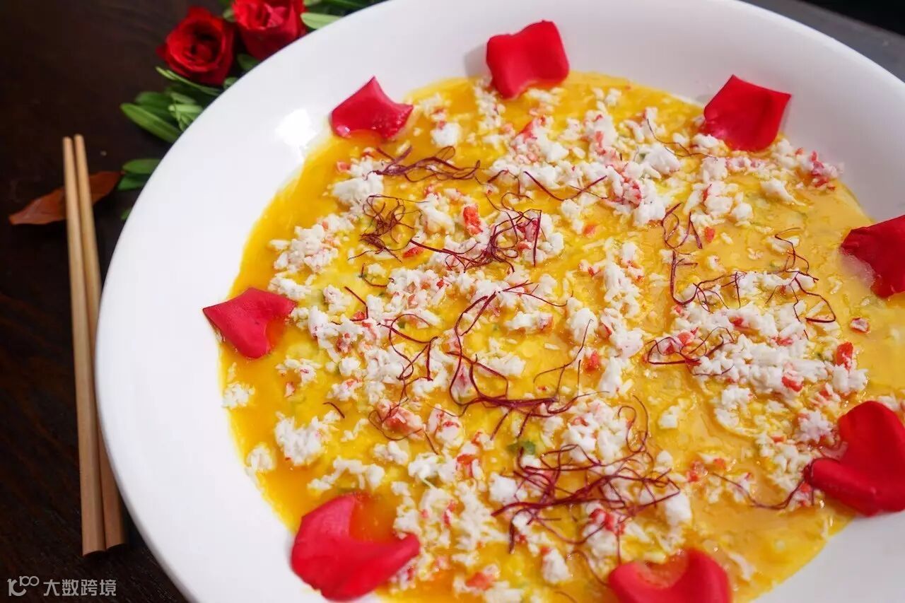 这花菜光是卖相就能秒杀不少手机内存。将豆腐和鱼胶一起搅拌均匀后加上玫瑰花一同蒸熟,再用撒上蟹肉,浇上南瓜汁,有卖相而且味道满分。