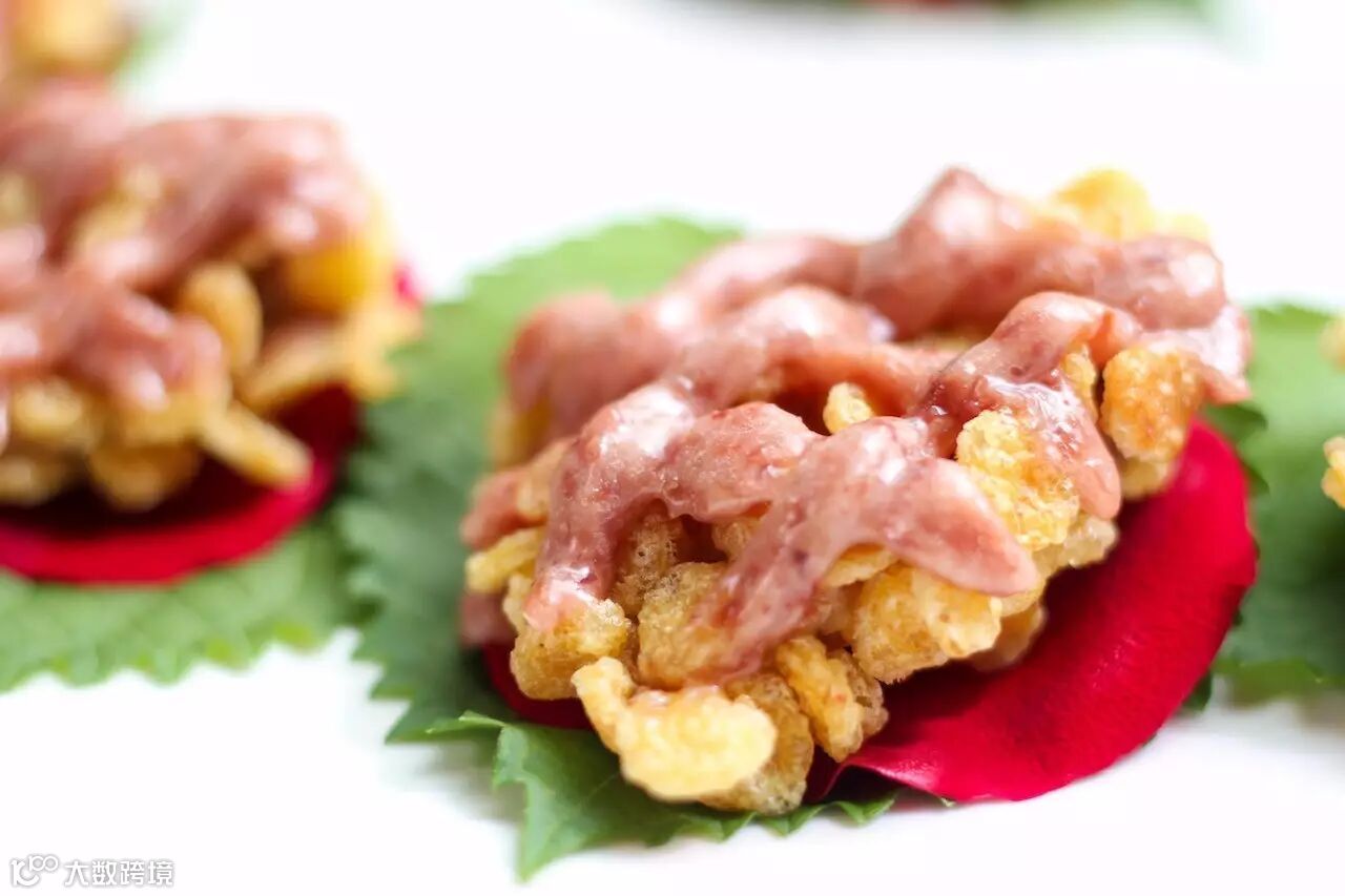 上等比利时猪柳腌制入味后,用粟米片包裹后下锅炸脆,淋上特制的玫瑰沙拉酱。第一口是浓浓的玫瑰花香味,第二口是香脆的外皮,最后一口是软嫩的猪柳,一层层递进的享受。